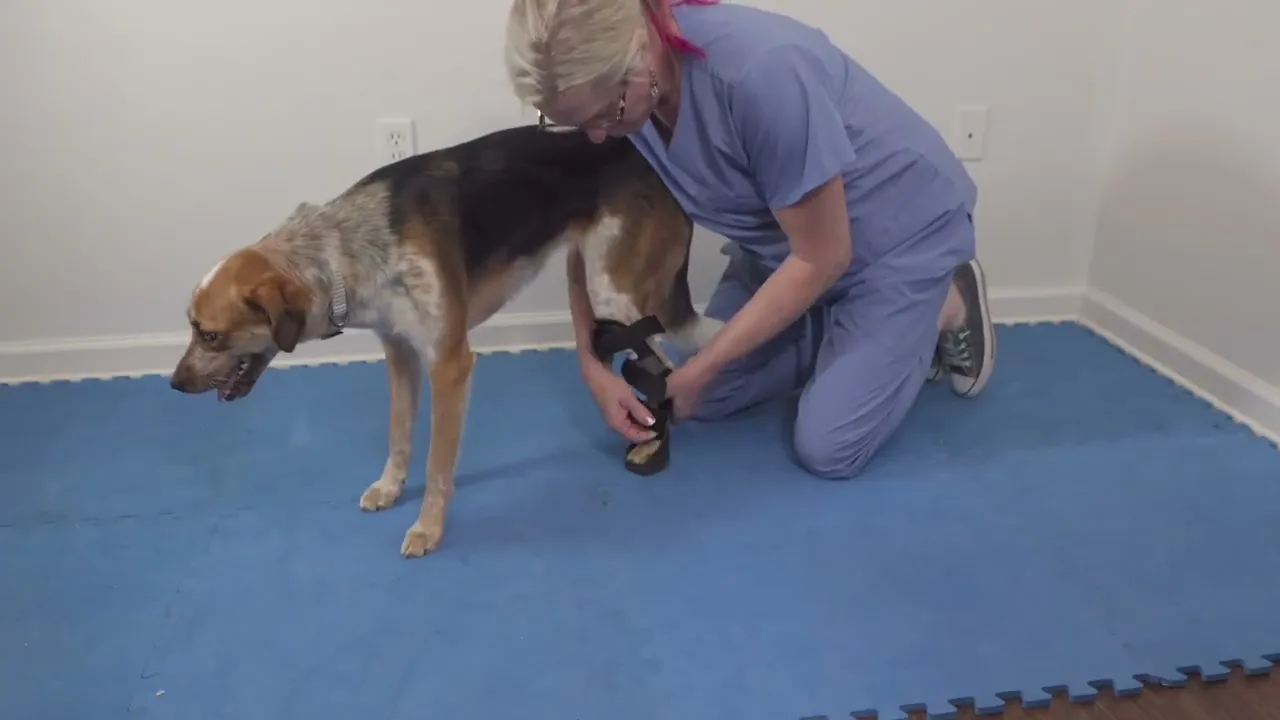 These exercises are shot wearing our stifle brace. They are useful for all dogs that are starting to wear a brace.